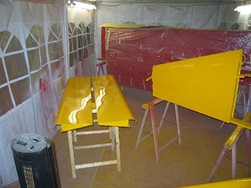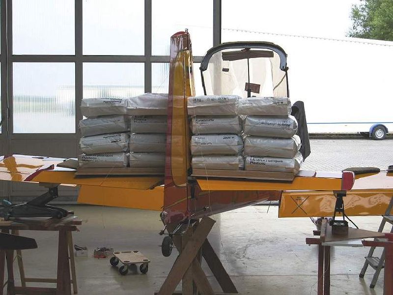 ca. 5 Kg Primer, Füller 3 Kg, Rot ca. 3 Kg, Gelb 3 Kg, davon 2 Kg, Abgeschliffen und 1 Kg in der Lunge.