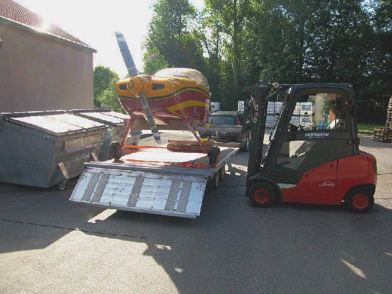 Leergewicht, mit Öl und Ausrüstung, außer Feuerlöscher = 485 Kg, (davon 29 Kg am Sporn).